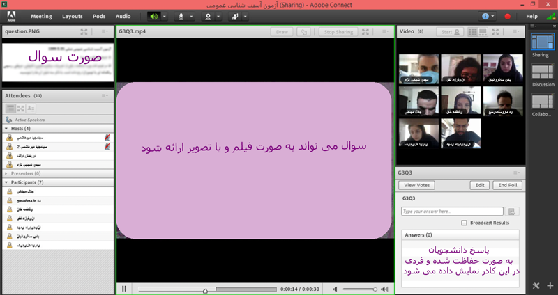 آزمون آسیب شناسی عملی دو دانشجویان ترم سه دانشکده دندانپزشکی مشهد، شنبه 99/5/25 با استفاده از سامانه webinar دانشگاه با قابلیتهای: