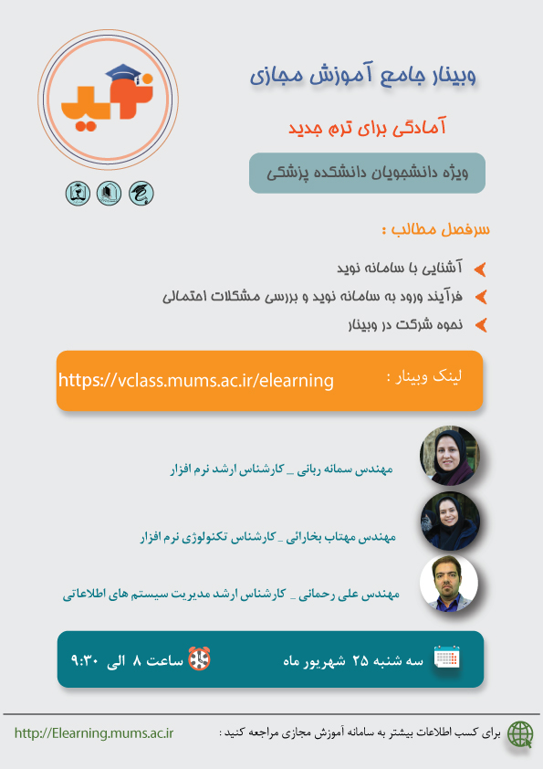 کارگاه آمادگی برای ترم جدید - ویژه دانشجویان دانشکده پزشکی سه شنبه 25 شهریور 99 ساعت 8 تا 9:30