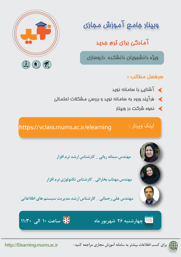 کارگاه آمادگی برای ترم جدید - ویژه دانشجویان دانشکده داروسازی چهارشنبه 26 شهریور 99 ساعت 10 تا 11:30 |